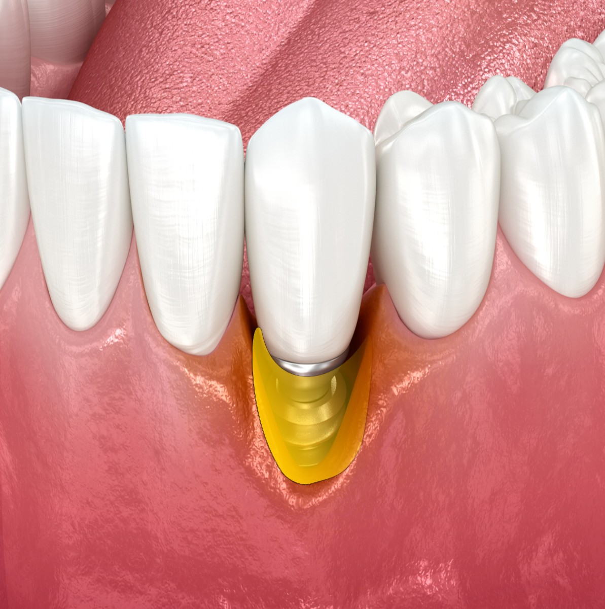 is used to disinfect and bring resolution of deep periodontal pockets. Presented