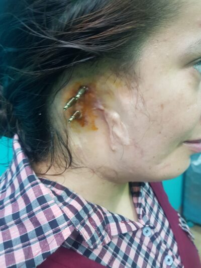 Two types of ear implants are available. fixed : ear propsthesis fixed by cover scre   Clip-ON implan: SNAP ON TYPE EASY TO REMOVE FOR HYGIENE MAINTAINCE.